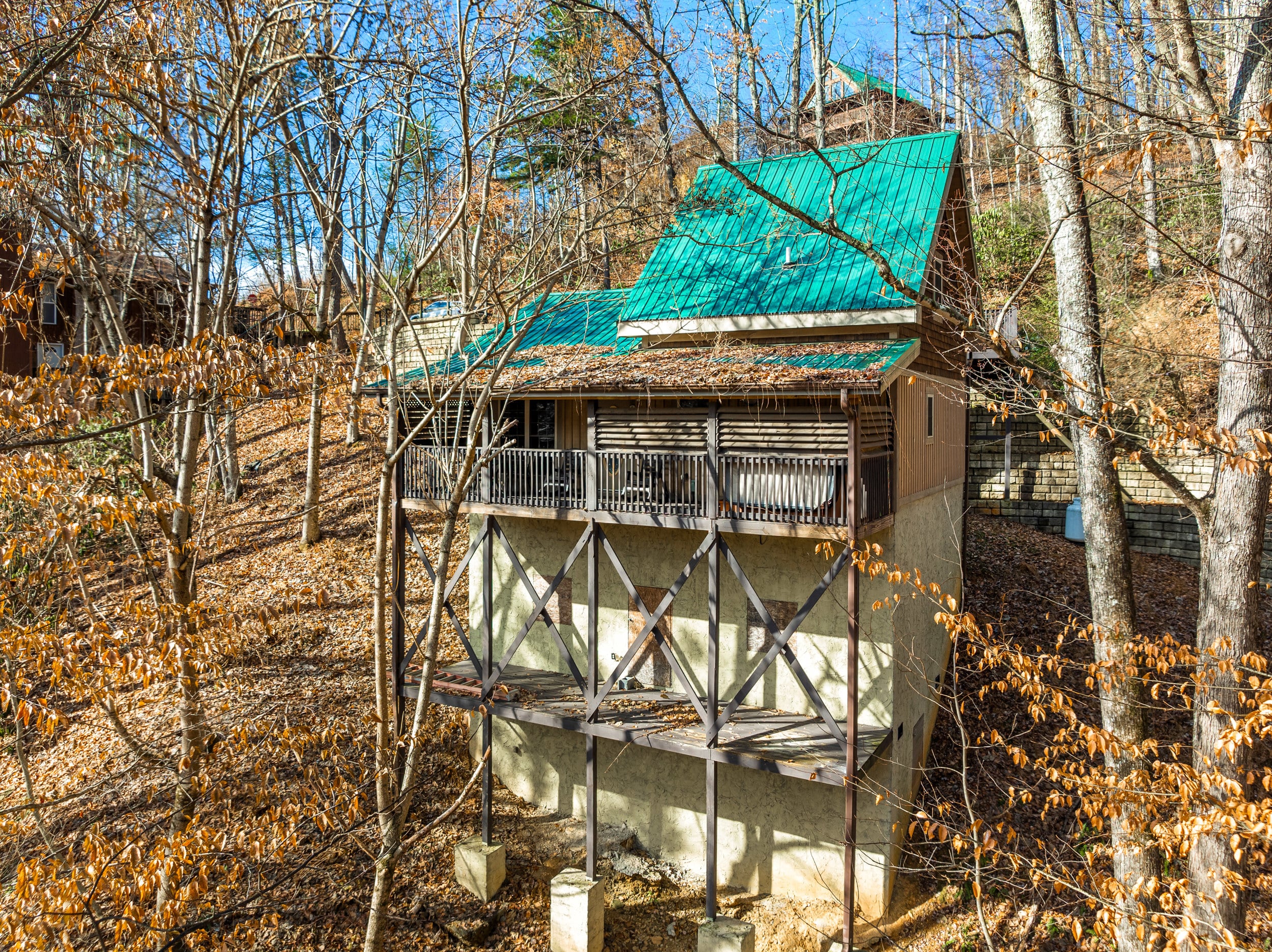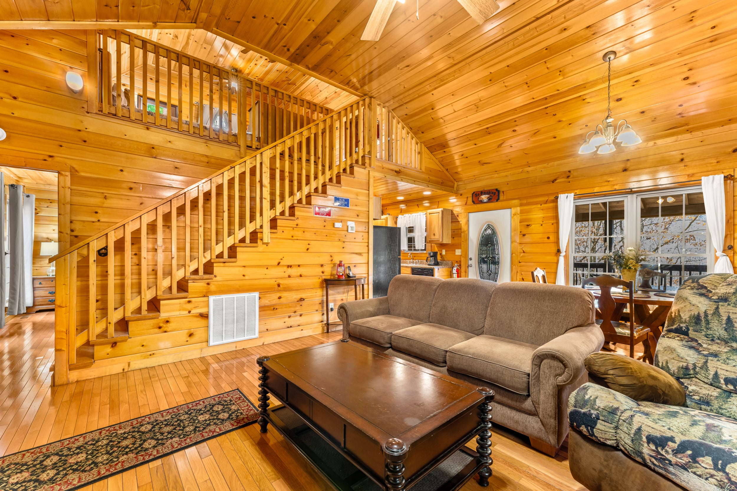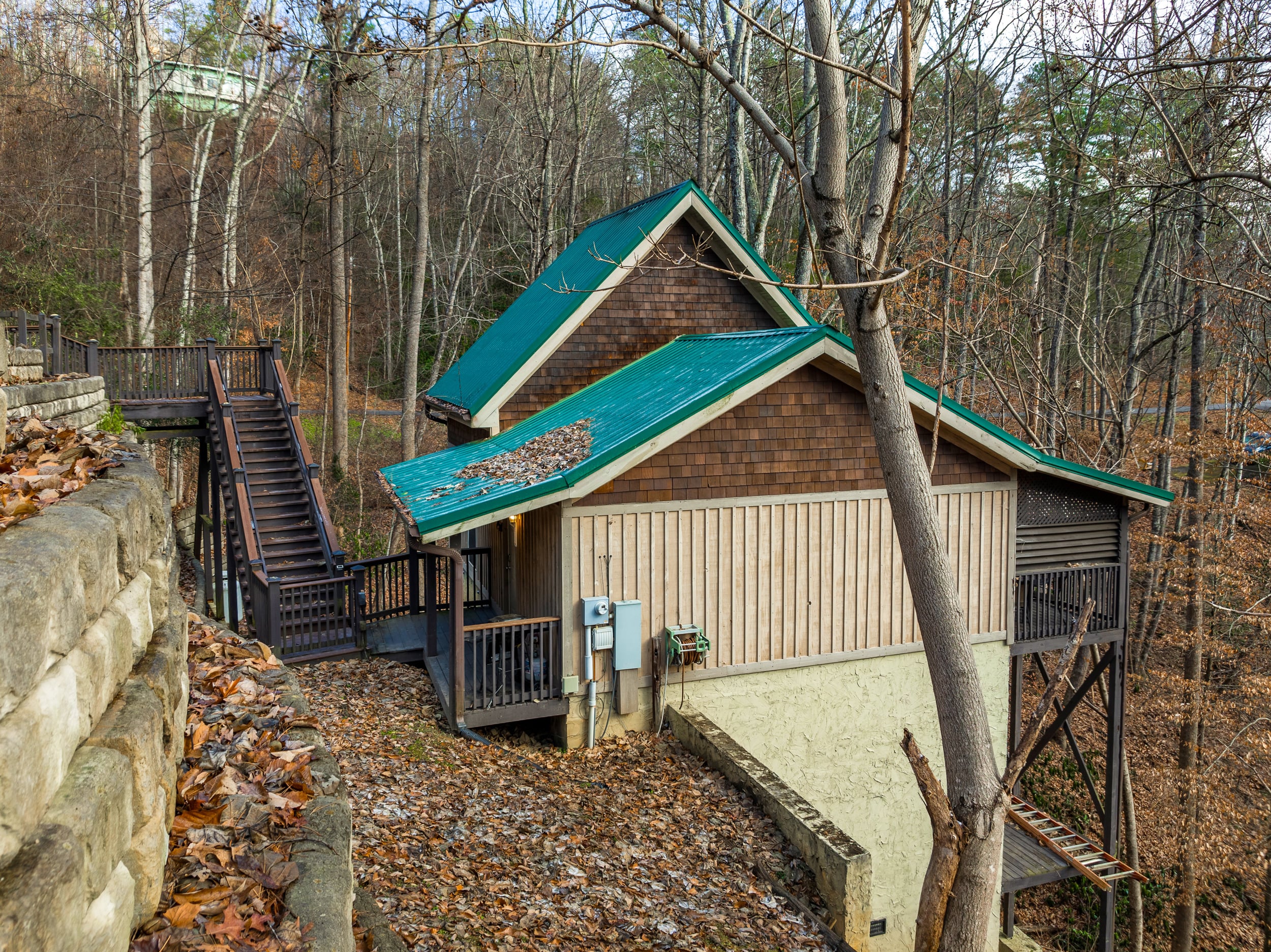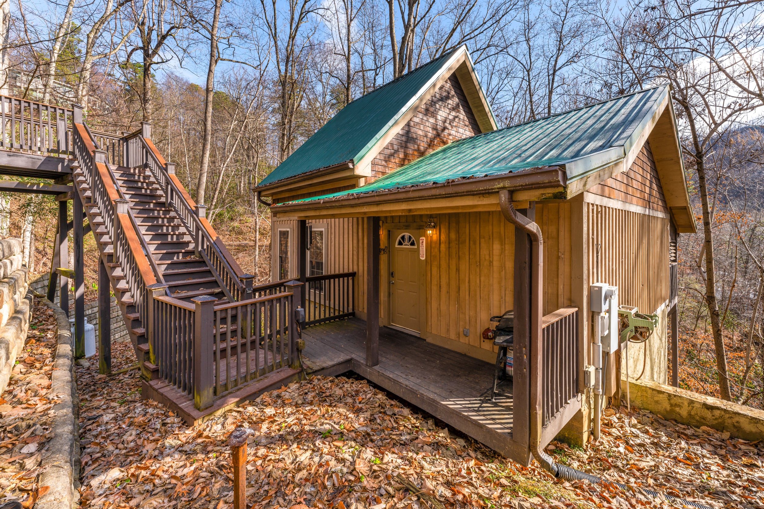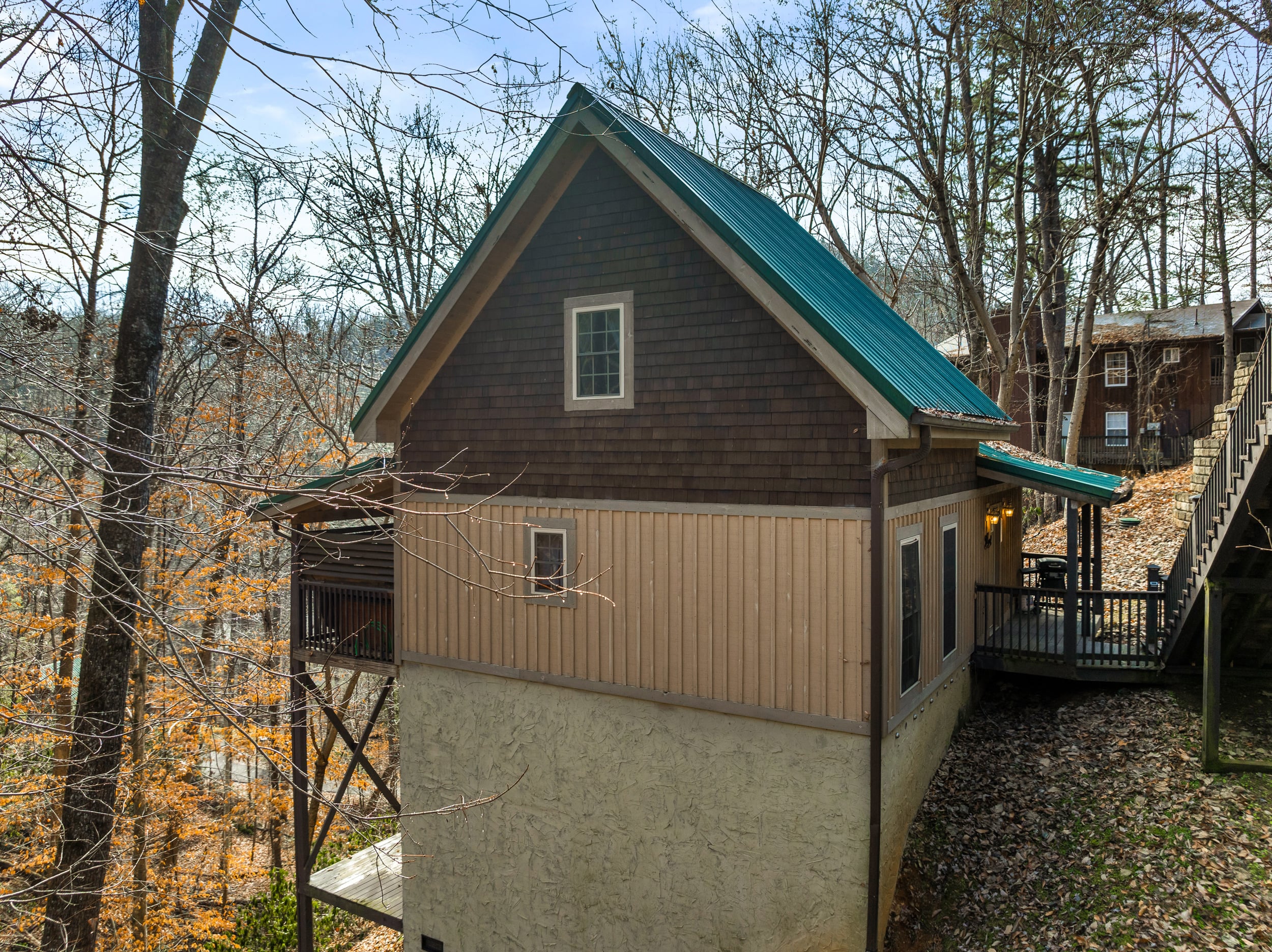 Dreamy little chalet in the woods! Savor peaceful Smoky Mountain comfort in this delightful 1 Bed, 1 Bath chalet boasting a private mountain setting close to Gatlinburg’s top attractions. Step inside to find warm woods and soaring cathedral ceilings that harmonize a balanced aesthetic of rustic charm and modern comfort. A cozy gas fireplace tucks itself into a corner of the living room, sharing the warmth of gently flickering flames as you kick back to relax. The fully equipped kitchen is designed for everyday life-- practically outfitted in a layout that keeps everything you need readily at hand, whether whipping up movie night snacks or mealtime delights to serve up in the adjacent dining area. Steps away is the laundry room, keeping all essentials close at hand. The primary bedroom and bathroom are located on the main floor, while further sleeping accommodations in the loft provide space for everyone, complete with an in-room jetted soaking tub. A lovely, covered deck with hot tub provides a secluded destination with partial mountain views. If you are looking for the option of a little extra space, this exceptional mountain retreat offers expansion possibilities with unfinished square footage on a lower level that could be converted into additional living space. The location is second to none: mere minutes to all the excitement in downtown Gatlinburg, while also conveniently close to Pigeon Forge attractions like Dollywood, dinner shows, theme museums and The Island at Pigeon Forge. A truly great STR opportunity or vacation home with serene privacy! Buyer to verify all information.